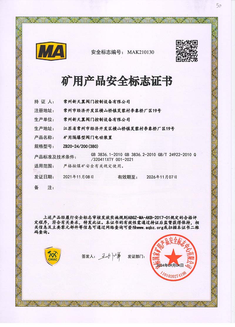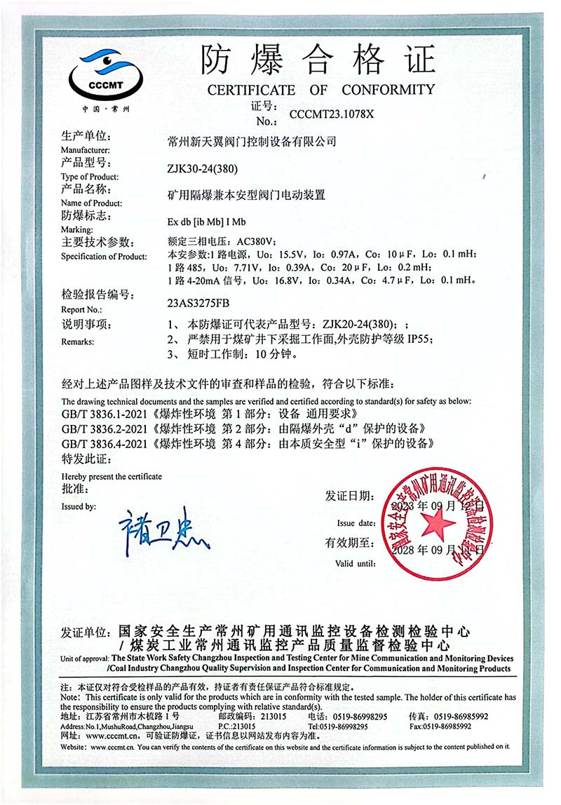 ZB20-24 200(660) 防爆合格證